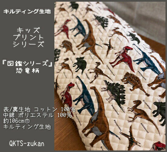 キルティング生地<<キッズプリント>>シリーズ生地/『図鑑シリーズ』恐竜柄のキルト生地です/男の子/入園入学/レッスンバッグ/シューズバッグ/巾着袋/ずかん/N20