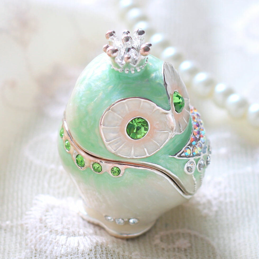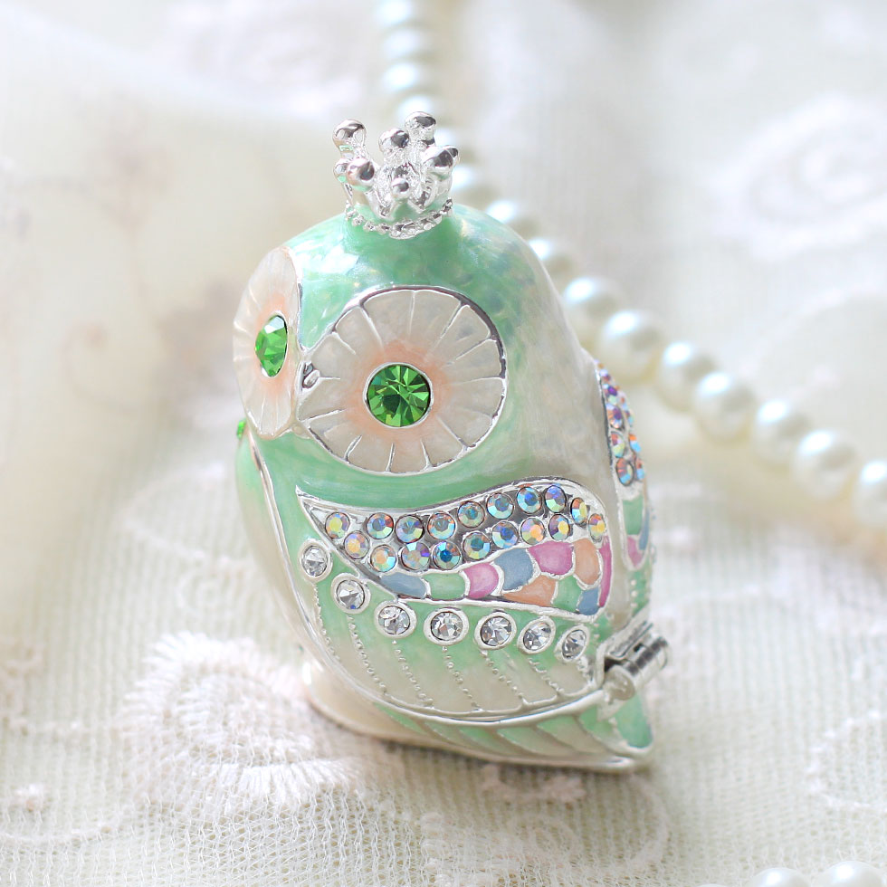 ジュエリーボックス クラウンフクロウ(オーシャングリーン) 縁起物 梟 福朗 鳥 不苦労(ふくろう)の置物 鳥 玄関 風水 乳歯入れ ジュエリーケース ギフト 卒業 入学 可愛い 誕生日プレゼント 女性 母の日 クリスマス 新生活 PICALS ピカルス